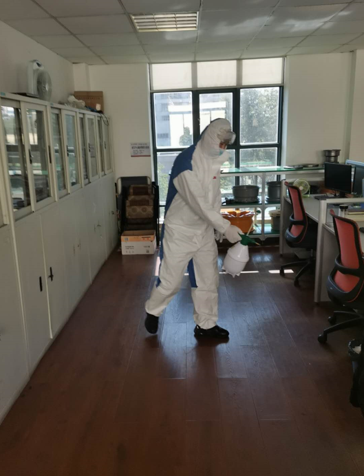 保障每位員工的健康是復工生產不容忽視的重要部分,充足的防疫物資是打好復工持久戰的關鍵。采購組積極準備各類防疫物資,確保了口罩、酒精、消毒液、噴壺等發放至生產車間和員工手中。此外,公司黨支部黨員勇當消毒先鋒提前做好辦公區、生產及作業場地等公共區域的消毒工作,以降低病毒的滋生能力和傳染力。